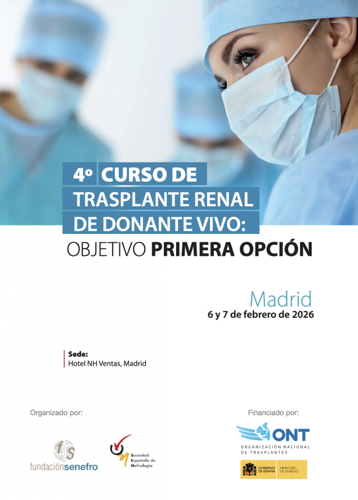 4º Curso de trasplante renal de donante vivo: objetivo primera opción Fechas: 6-7 de febrero 2026 Ciudad: Madrid Web Tags: Cursodpmedicinariñón